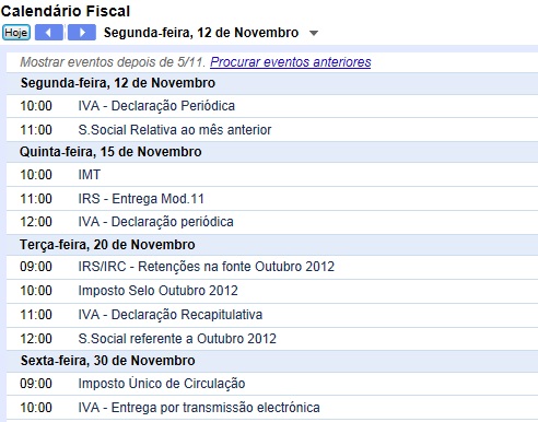 O calendário fiscal da Pacontas permite-lhe observar as datas relevantes que decorrem do calendário fiscal português para os diversos impostos.
